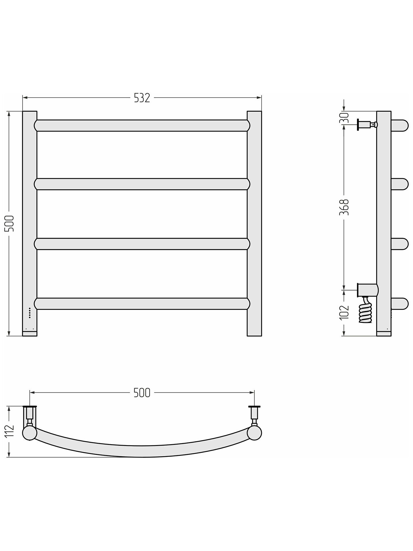 Полотенцесушитель электрический Сунержа Галант 4.0 500х500 МЭМ левый Матовый чёрный