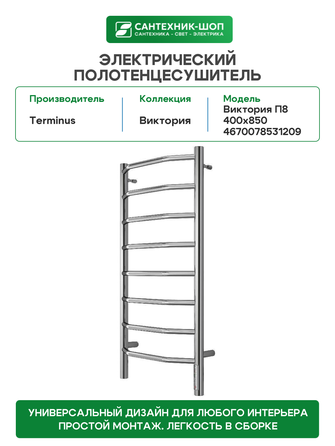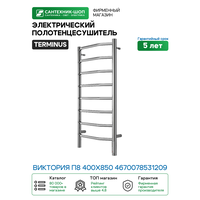 Купить Полотенцесушитель электрический Terminus Виктория П8 400х850 4670078531209 Хром нержавеющая сталь с доставкой по всей России.