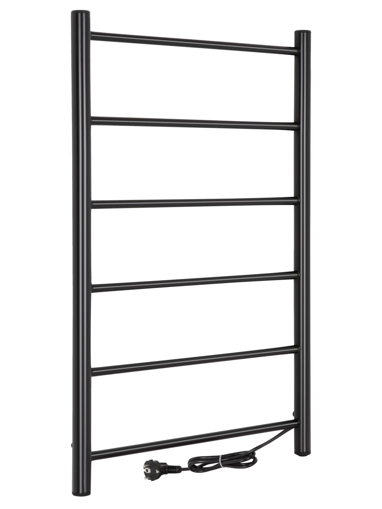 Купить Полотенцесушитель электрический Vimarr 500х800 лесенка с нагревательным кабелем, подключение боковое, Kaskad PSK-VMRKe58BL черный матовый с доставкой по всей России.