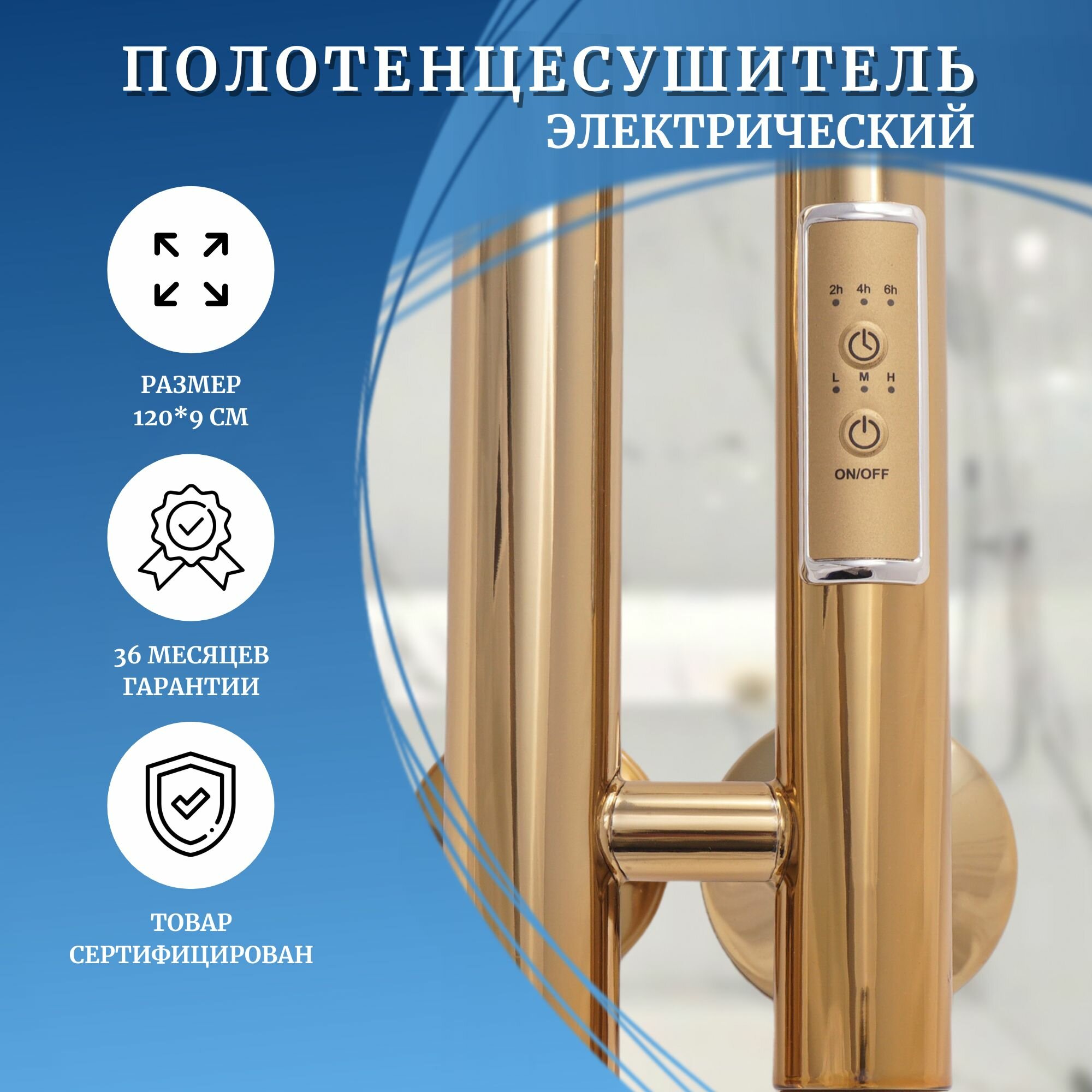 Полотенцесушитель электрический компании Маргроид, модель Inaro-2 размером 1200х90 мм в золотистом исполнении, представляет собой премиум-класс устройства для вашей ванной комнаты. Изготовленный из высококачественной нержавеющей стали, материал этого полотенцесушителя отполирован до зеркального блеска, придавая вашему интерьеру роскошный вид.
