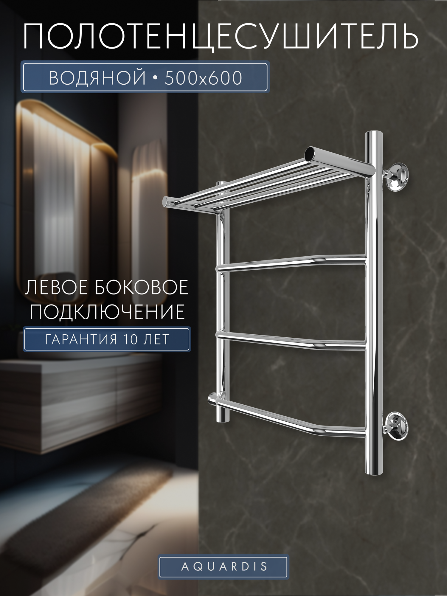 | Дополнительная информация | В комплект входит: 1. Полотенцесушитель, 2. Упаковка, 2.1 Короб из гофрокартона, 2.2 Полиэтиленовый пакет, 3. Паспорт на изделие — гарантийный талон, 4. Клапан «Маевского» —2шт., 5. Кольцо уплотнительное 3/4 — 2шт., 6. Кронштейн телескопический — 2шт. Соединитель для подключения в комплект не входит. |