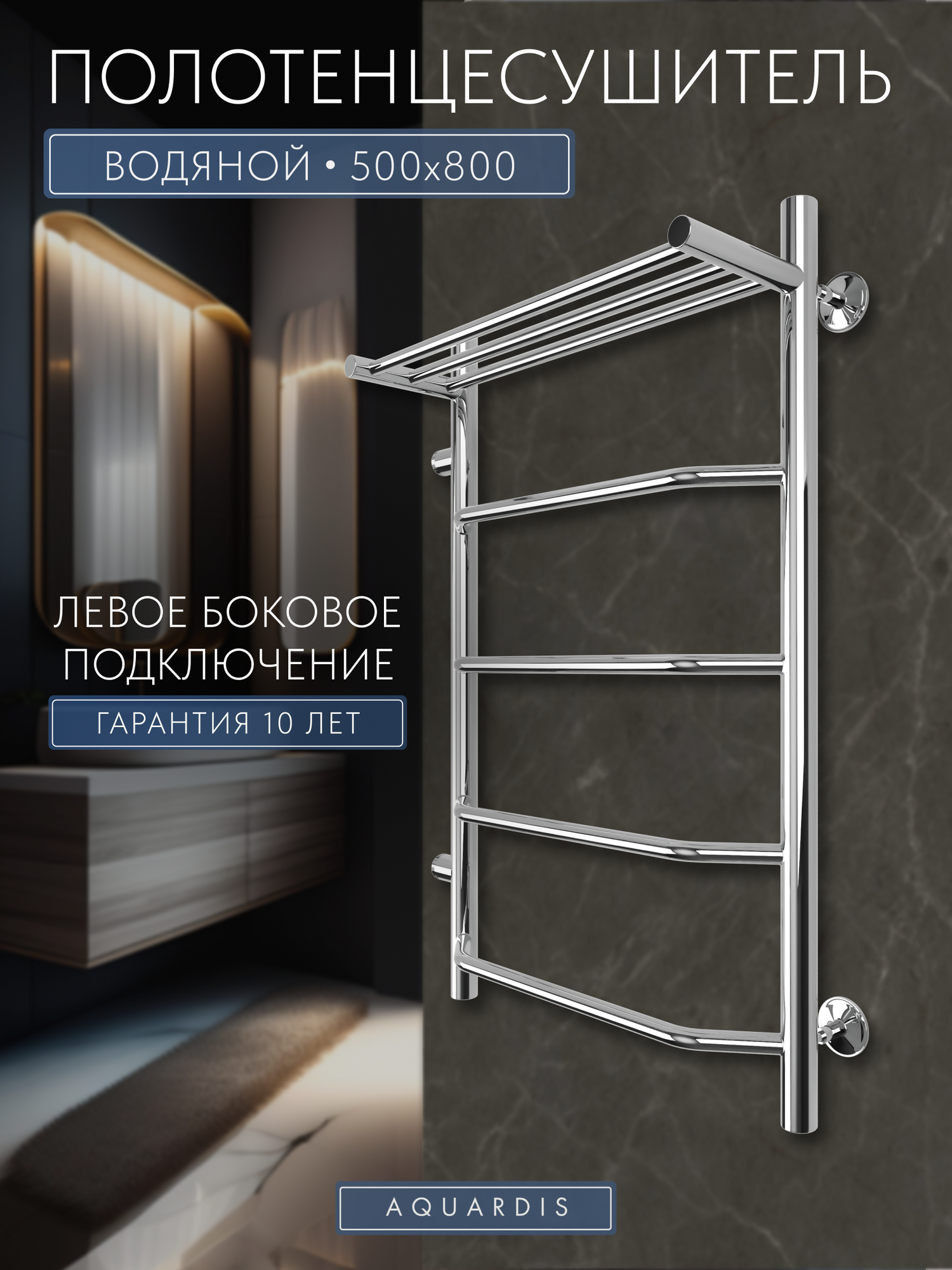 Купить Полотенцесушитель GALATEYA водяной 500х800 Межсоевое 320мм с полочкой левое боковое подключениие с доставкой по всей России.