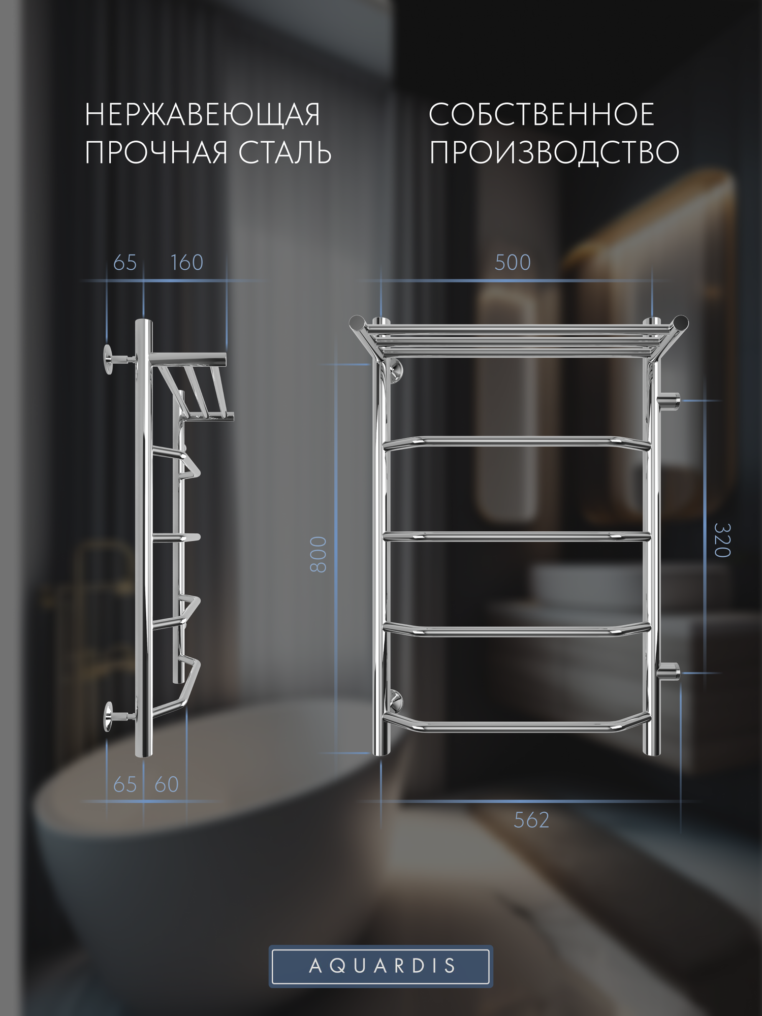Полотенцесушитель GALATEYA водяной 500х800 Межсоевое 320мм с полочкой правое боковое подключениие: сравнение цен, характеристики, фото, актуальное наличие и цены.