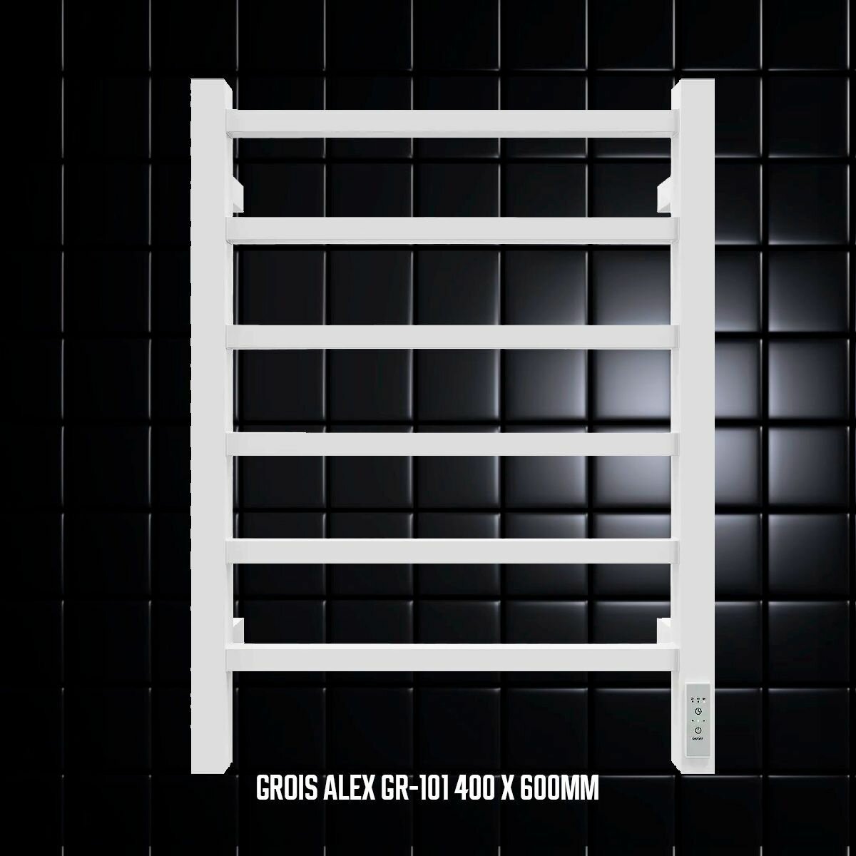 Полотенцесушитель электрический GROIS Alex GR-101 400/600 (ШхВ), RAL9016/U-универсальный, белый: сравнение цен, характеристики, фото, актуальное наличие и цены.