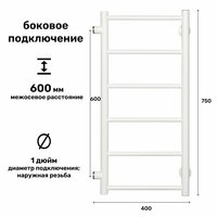 Полотенцесушитель Лесенка Прямая 750х400 белый боковое подключение 1 дюйм