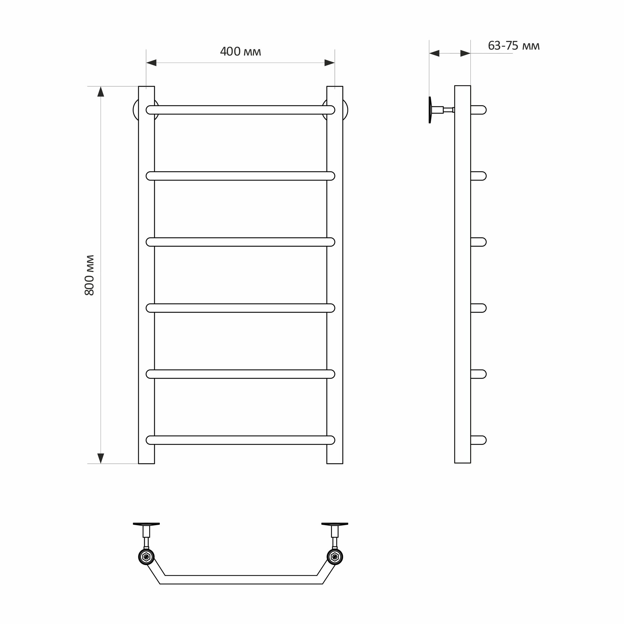 Купить Полотенцесушитель-лесенка водяной 80х40 см (нижнее подключение 1/2′ Внутр. резьба, 6 перекладин) с доставкой по всей России.