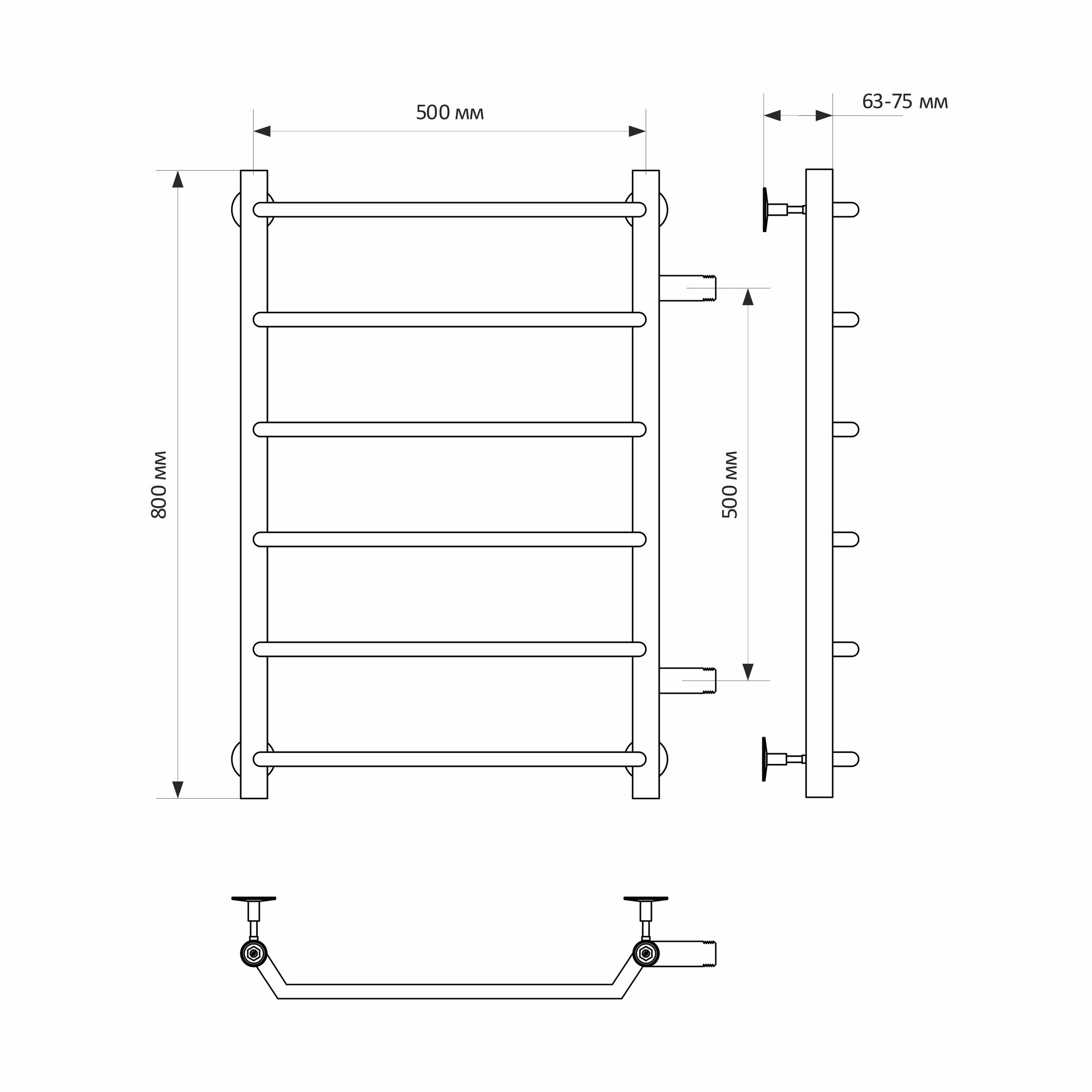 Полотенцесушитель-лесенка водяной 80х50х50 см (подключение 1′ дюйм, наружная резьба, 6 перекладин, боковое правое подключение): сравнение цен, характеристики, фото, актуальное наличие и цены.