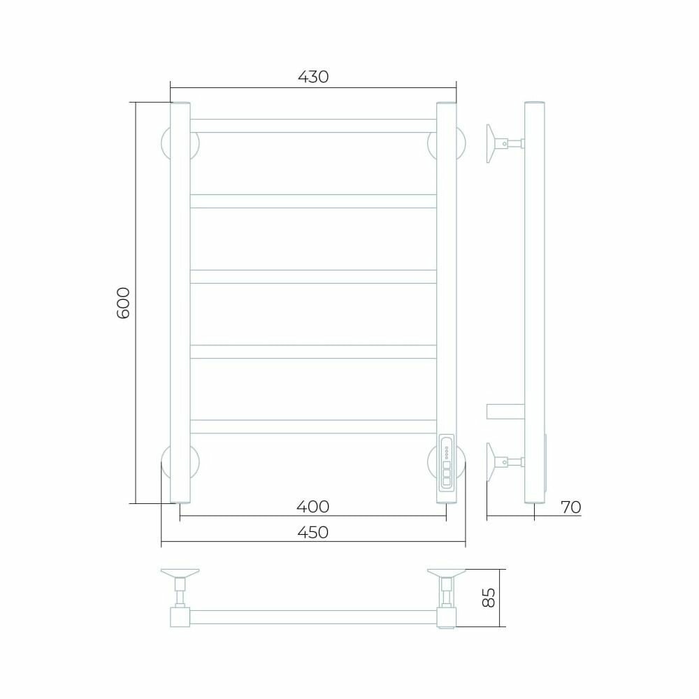 Электрический полотенцесушитель Larusso Феличия П5 400x600 9005 4670078536655 обладает встроенным терморегулятором, позволяющим управлять устройством в случае необходимости.