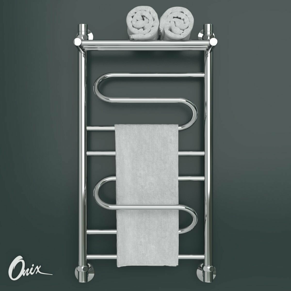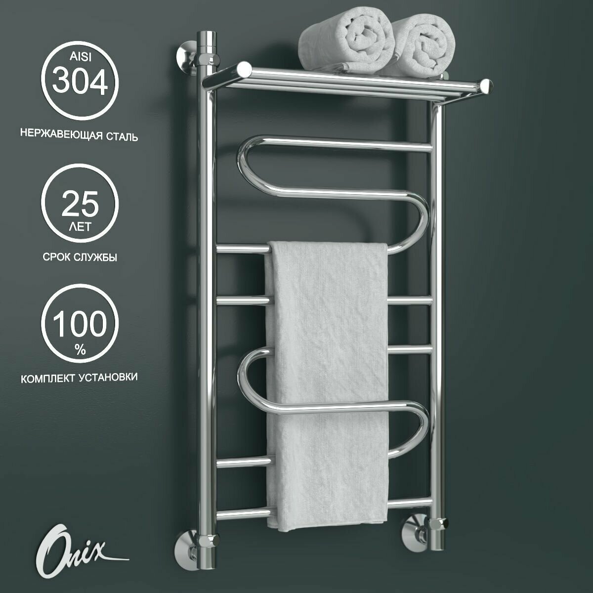 Купить Полотенцесушитель Onix, модель Flex Plus 400×800, лесенка с полкой, нижнее подключение, полный комплект с доставкой по всей России.