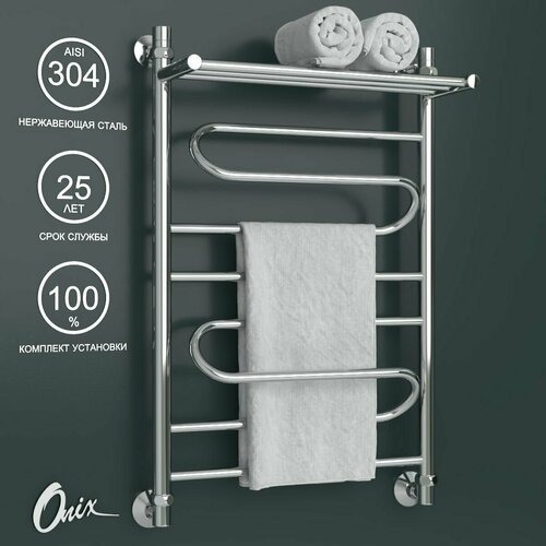 Купить Полотенцесушитель Onix, модель Flex Plus 500×800, лесенка с полкой, нижнее подключение, полный комплект с доставкой по всей России.