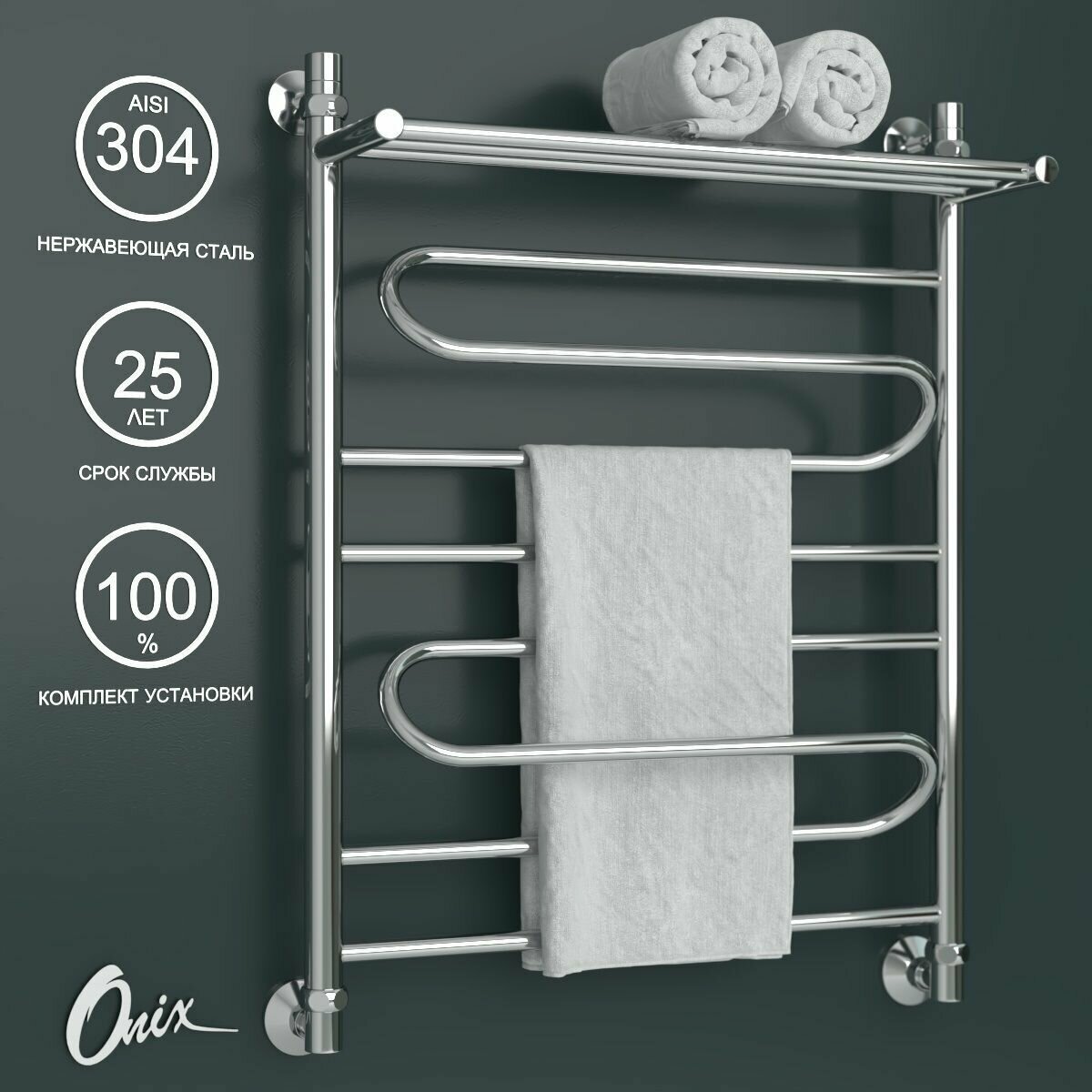 Купить Полотенцесушитель Onix, модель Flex Plus 600×800, лесенка с полкой, нижнее подключение, полный комплект с доставкой по всей России.