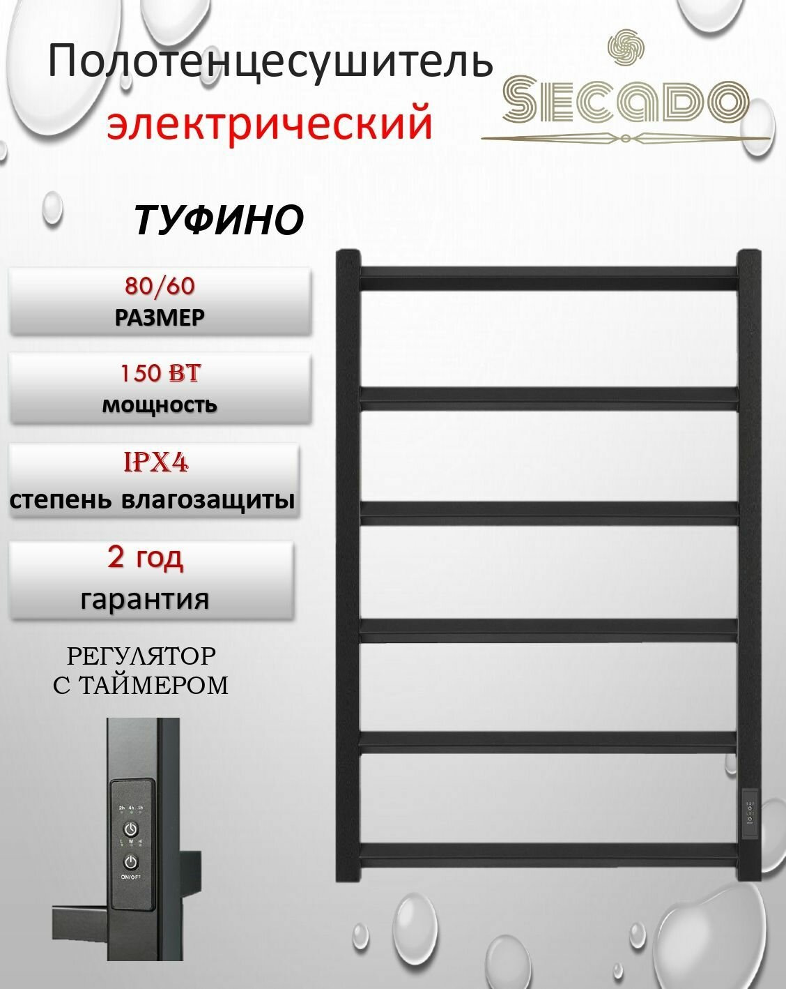 Полотенцесушитель Secado Туфино 80/50, электрический R (справа), черный матовый: сравнение цен, характеристики, фото, актуальное наличие и цены.