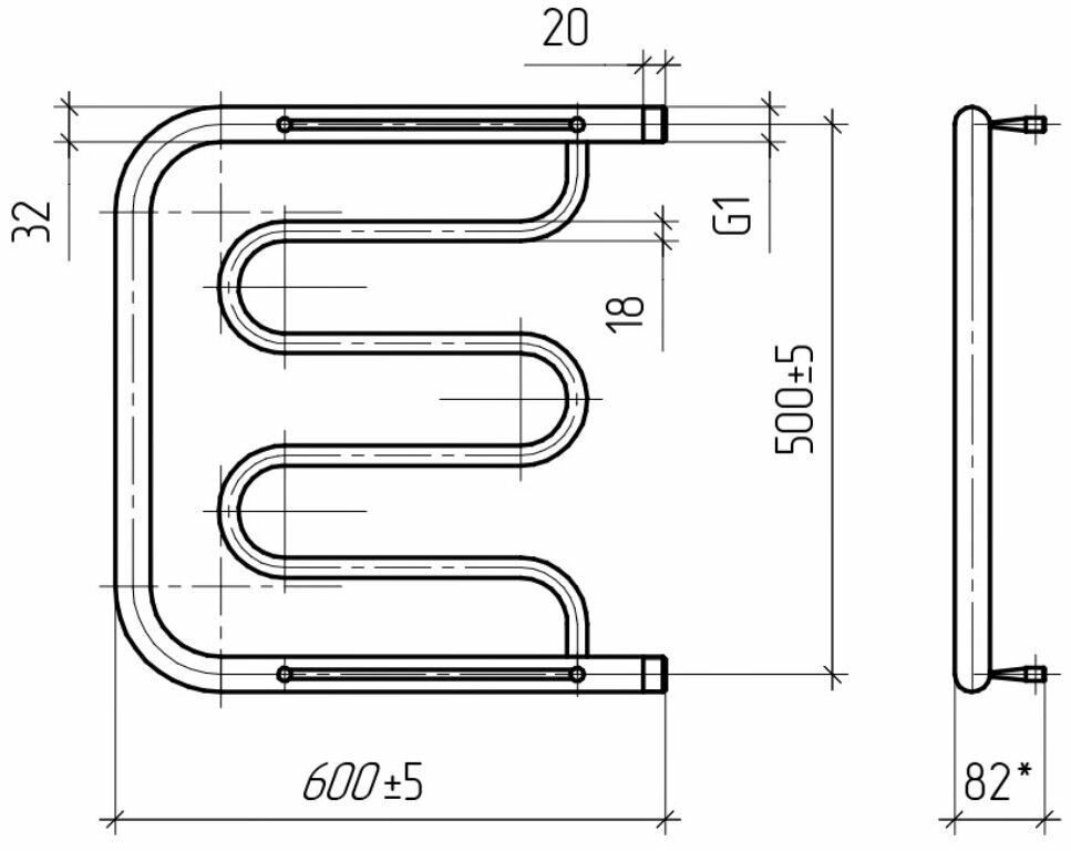 Полотенцесушитель Tera Фокстрот ПМ, водяной, нержавеющая сталь, 50x60 см