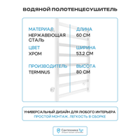 Водяной полотенцесушитель Terminus Ното П8 500x800 4670078544353 нержавеющая сталь