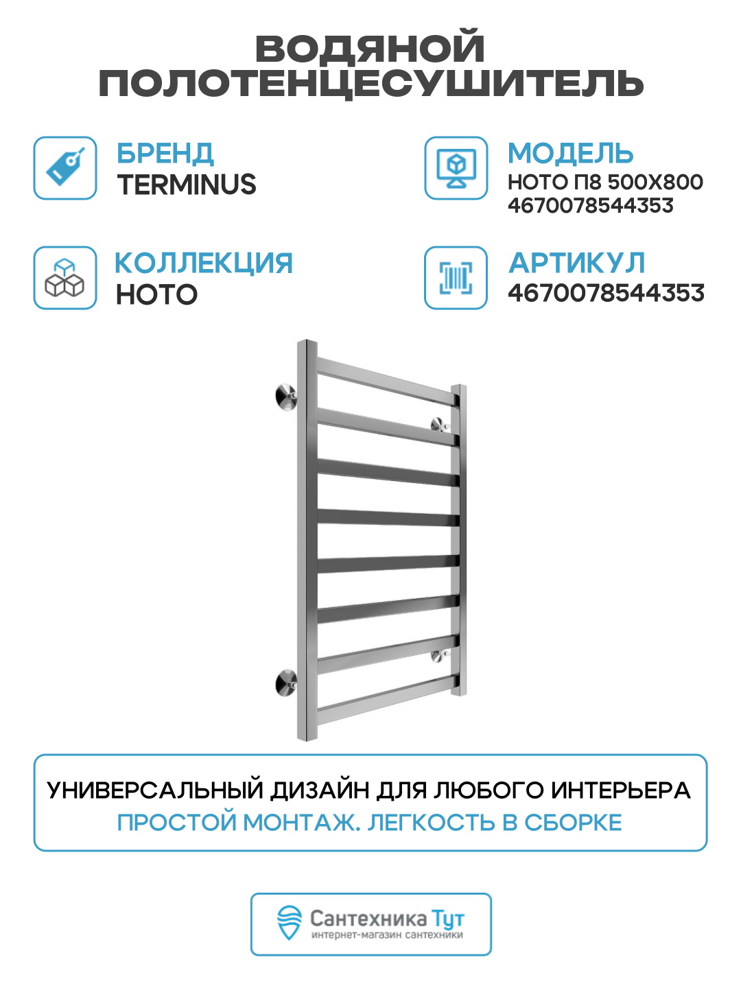 Полотенцесушитель Terminus Ното П8 500х800: сравнение цен, характеристики, фото, актуальное наличие и цены.
