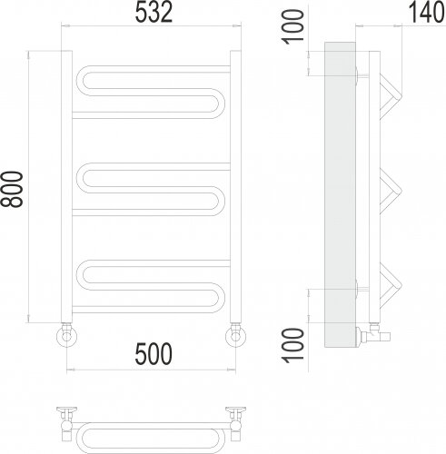 | Дополнительная информация | Заглушка - 1 шт., кран маевского - 1 шт., закреплены в трубе полотенцесушителя, телескопическое крепление - 2 шт., паспорт изделия, гарантийный талон. ВНИМАНИЕ! Дополнительно приобретаются прямое соединение 1"х1" - 2 шт. |