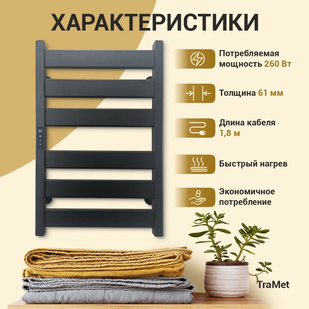 Полотенцесушитель TraMet 72x48x6см, левый, черный, матовый, BK608L, 260 Вт, IPX4: сравнение цен, характеристики, фото, актуальное наличие и цены.