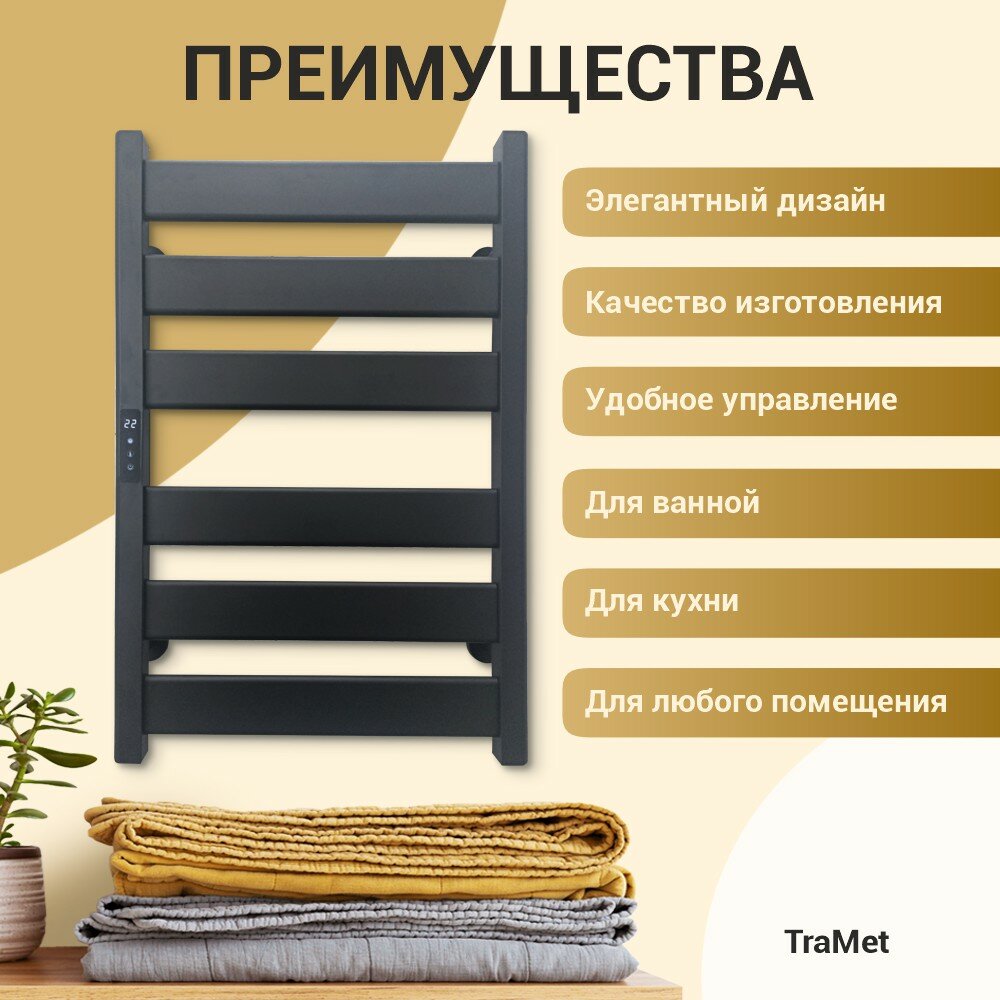Купить Полотенцесушитель TraMet 72x48x6см, левый, черный, матовый, BK608L, 260 Вт, IPX4 с доставкой по всей России.