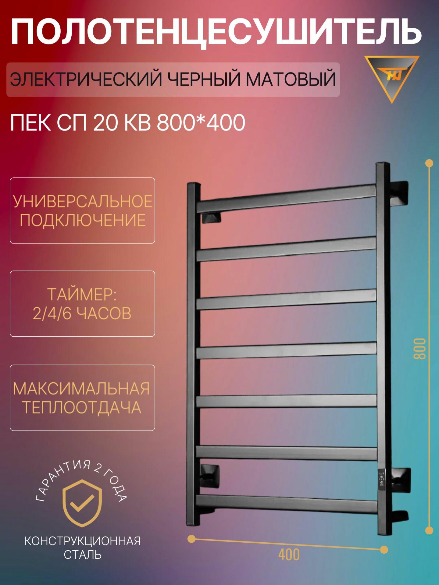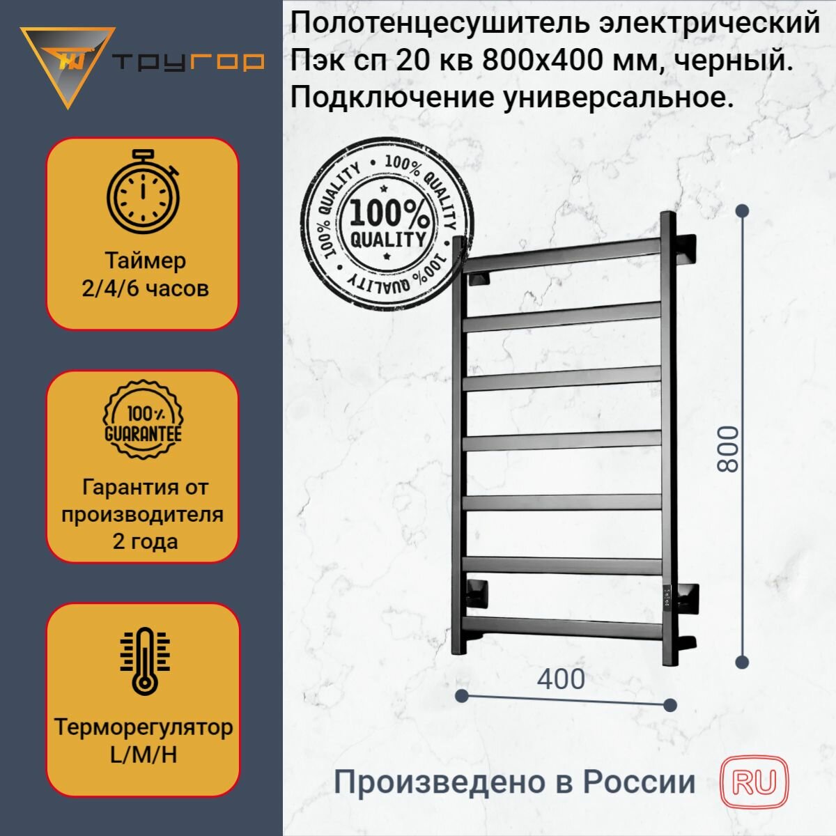 Купить Полотенцесушитель Тругор Пэк сп 20 кв 400*800 мм черный матовый, подключение универсальное. с доставкой по всей России.