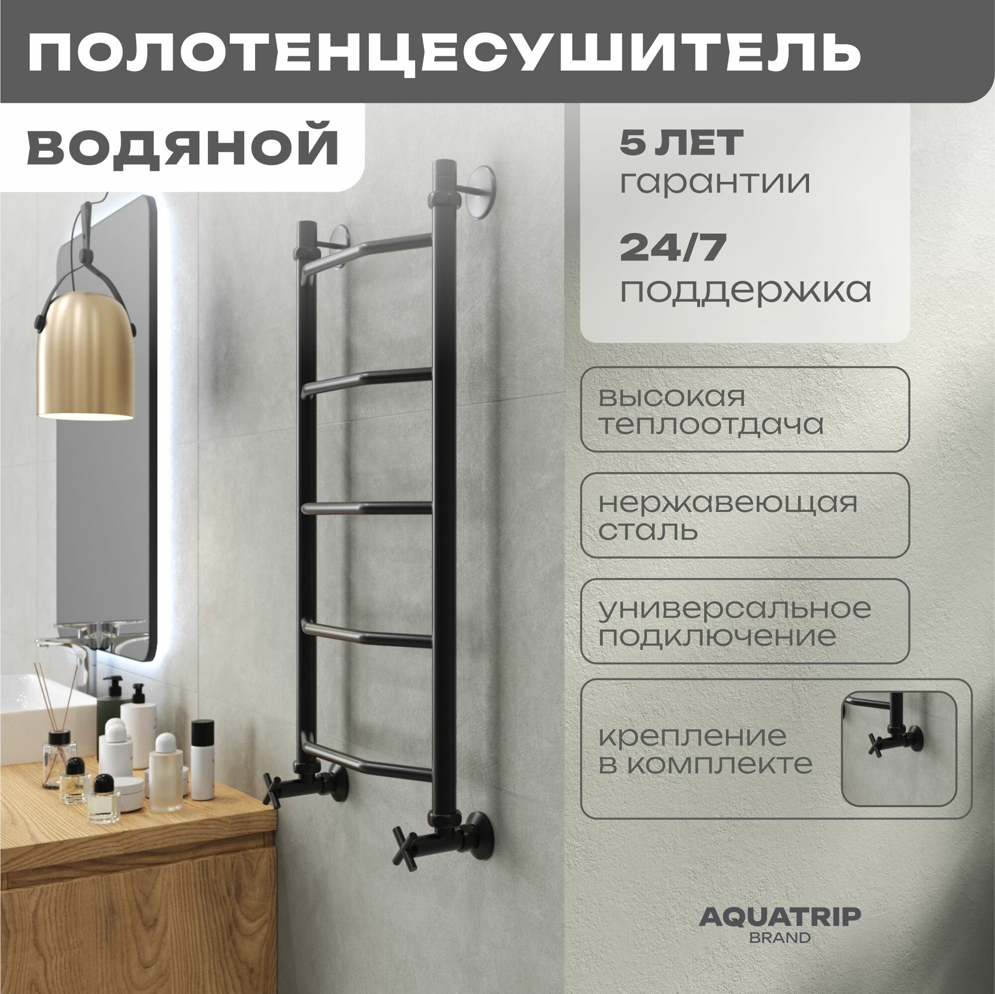 Полотенцесушитель водяной AQUATRIP, модель Cuba Black Edition 400×800мм, полный комплект кран крест: сравнение цен, характеристики, фото, актуальное наличие и цены.