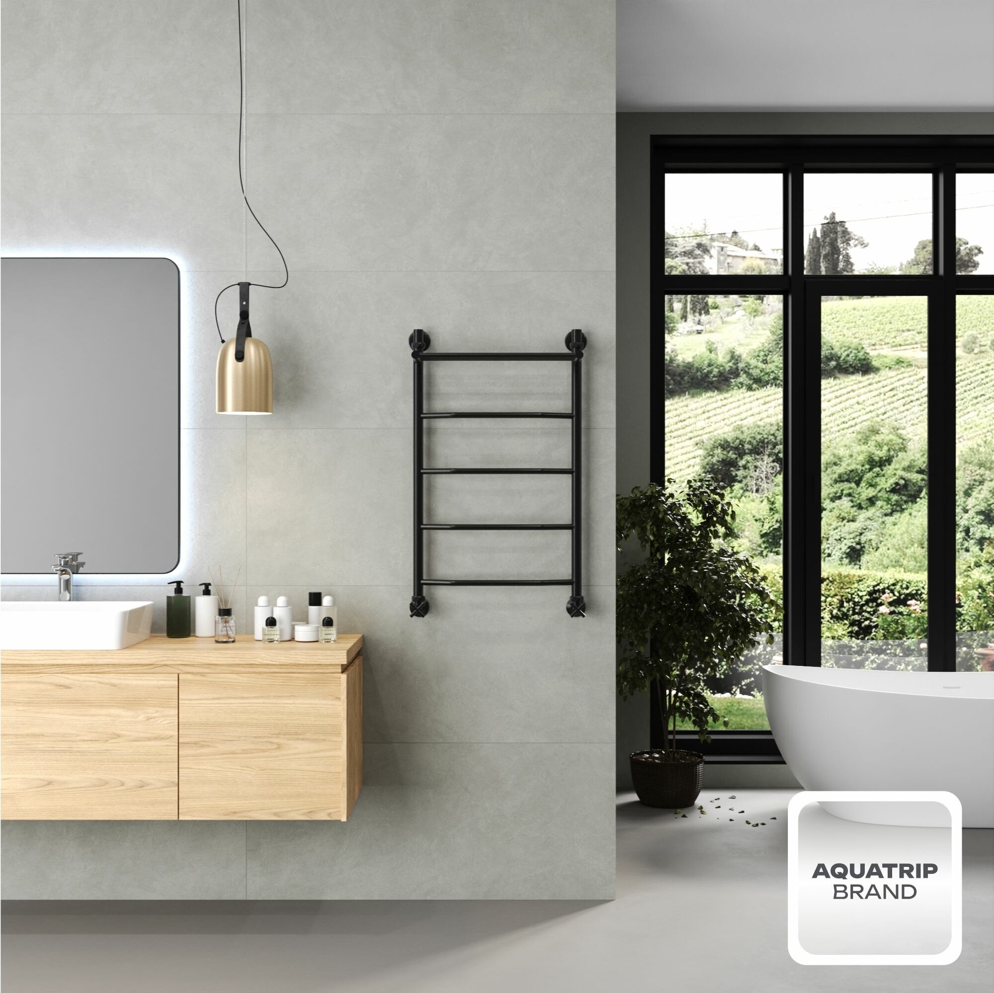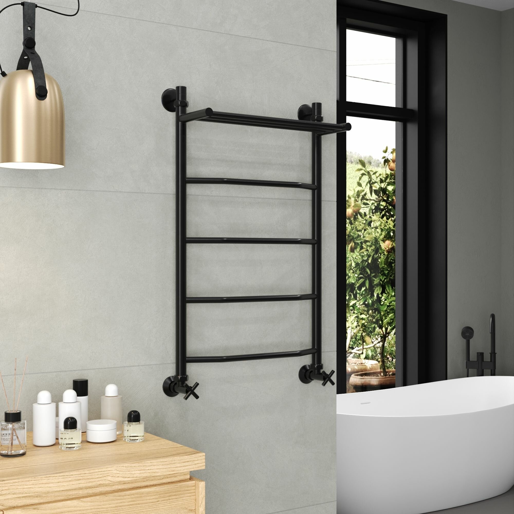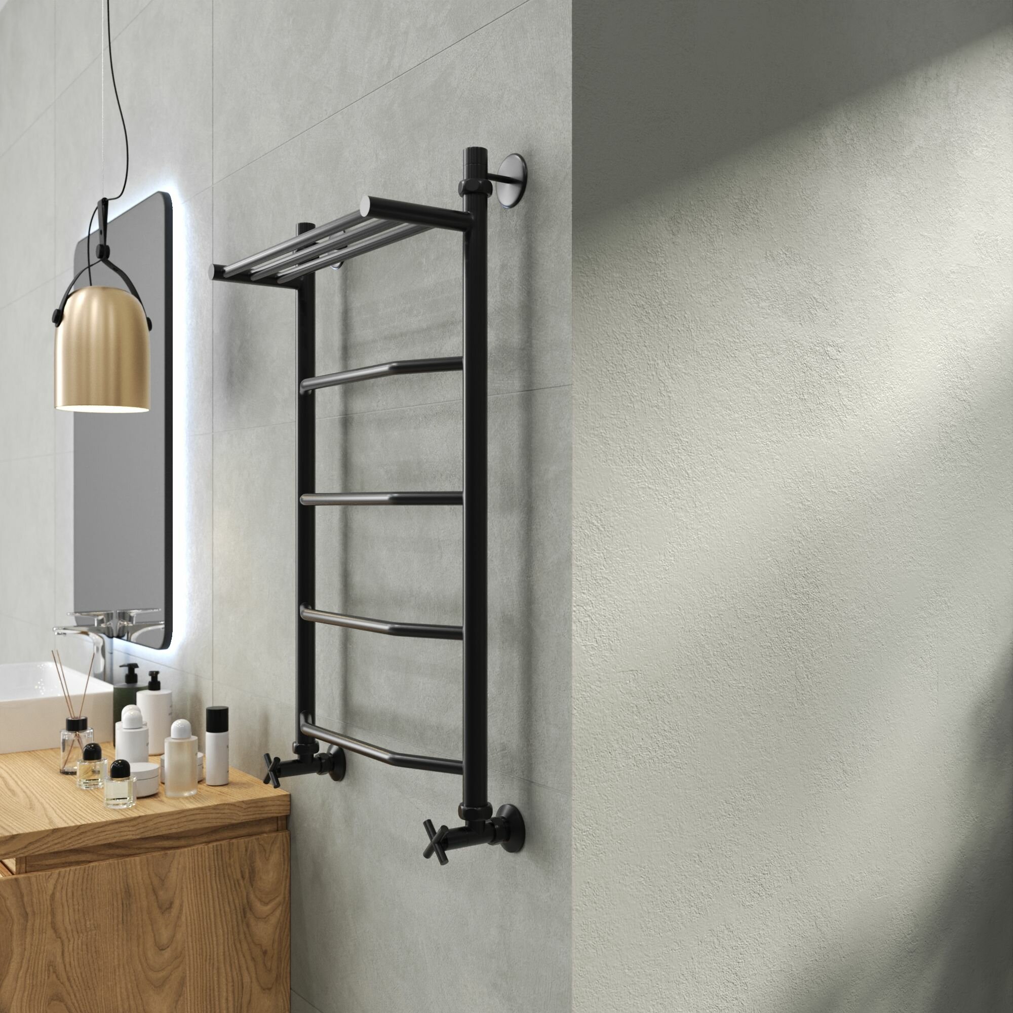 Полотенцесушитель водяной AQUATRIP, модель Cuba Black Edition с полкой 500×800мм, полный комплект кран крест: сравнение цен, характеристики, фото, актуальное наличие и цены.