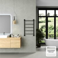 Купить Полотенцесушитель водяной AQUATRIP, модель Cuba Black Edition с полкой 500×800мм, полный комплект кран крест с доставкой по всей России.