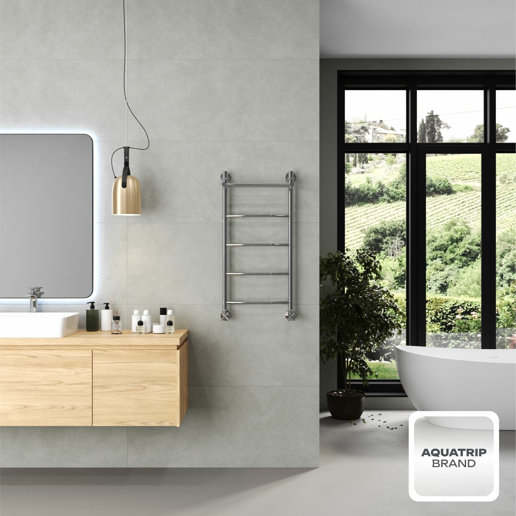 Купить Полотенцесушитель водяной AQUATRIP, модель Cuba с полкой 400×800мм, полный комплект кран крест с доставкой по всей России.