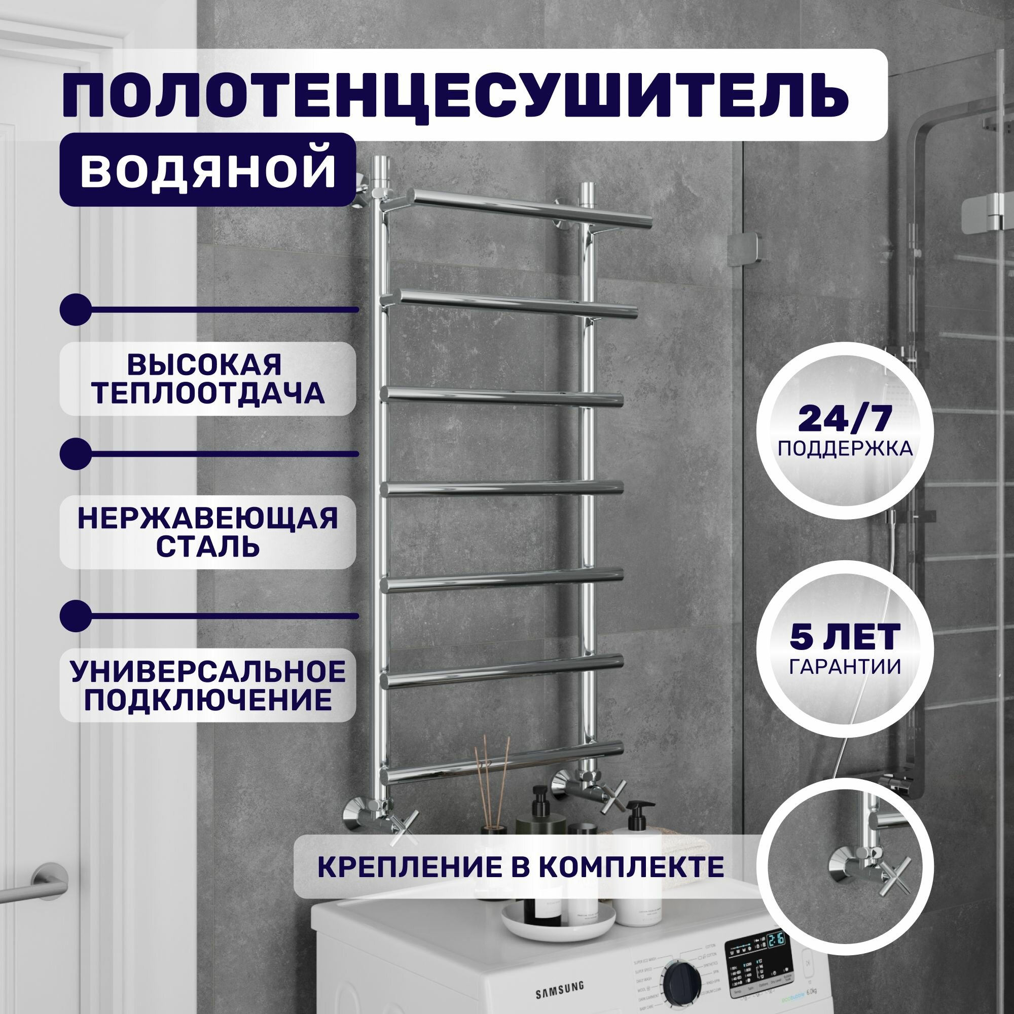 Полотенцесушитель водяной AQUATRIP, модель Ibiza New 400×1000мм, полный комплект кран крест: сравнение цен, характеристики, фото, актуальное наличие и цены.