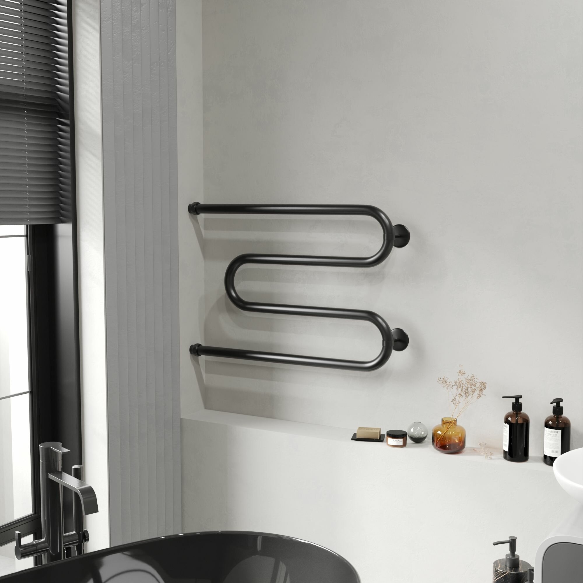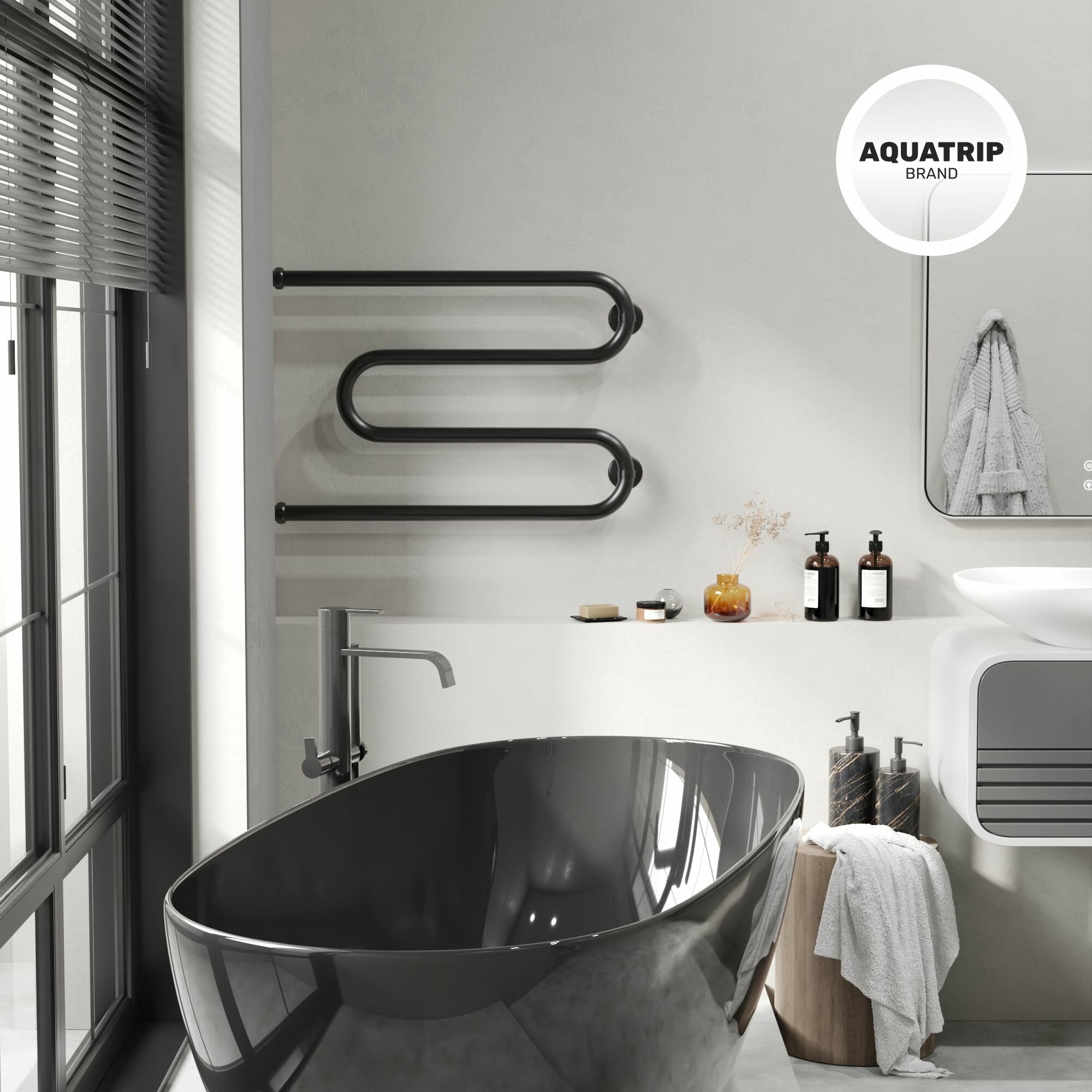 Купить Полотенцесушитель водяной AQUATRIP, модель Malta Black Edition без полки 500×700мм, с прямым соединением г/ш 1″х3/4″ с доставкой по всей России.