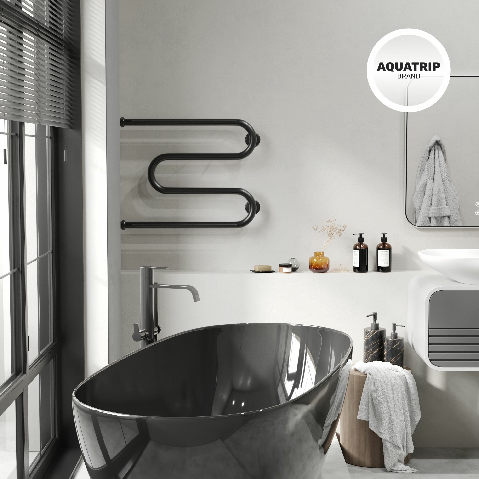 Купить Полотенцесушитель водяной AQUATRIP, модель Malta Black Edition с полкой 500×600мм, с прямым соединением г/ш 1″х3/4″ с доставкой по всей России.
