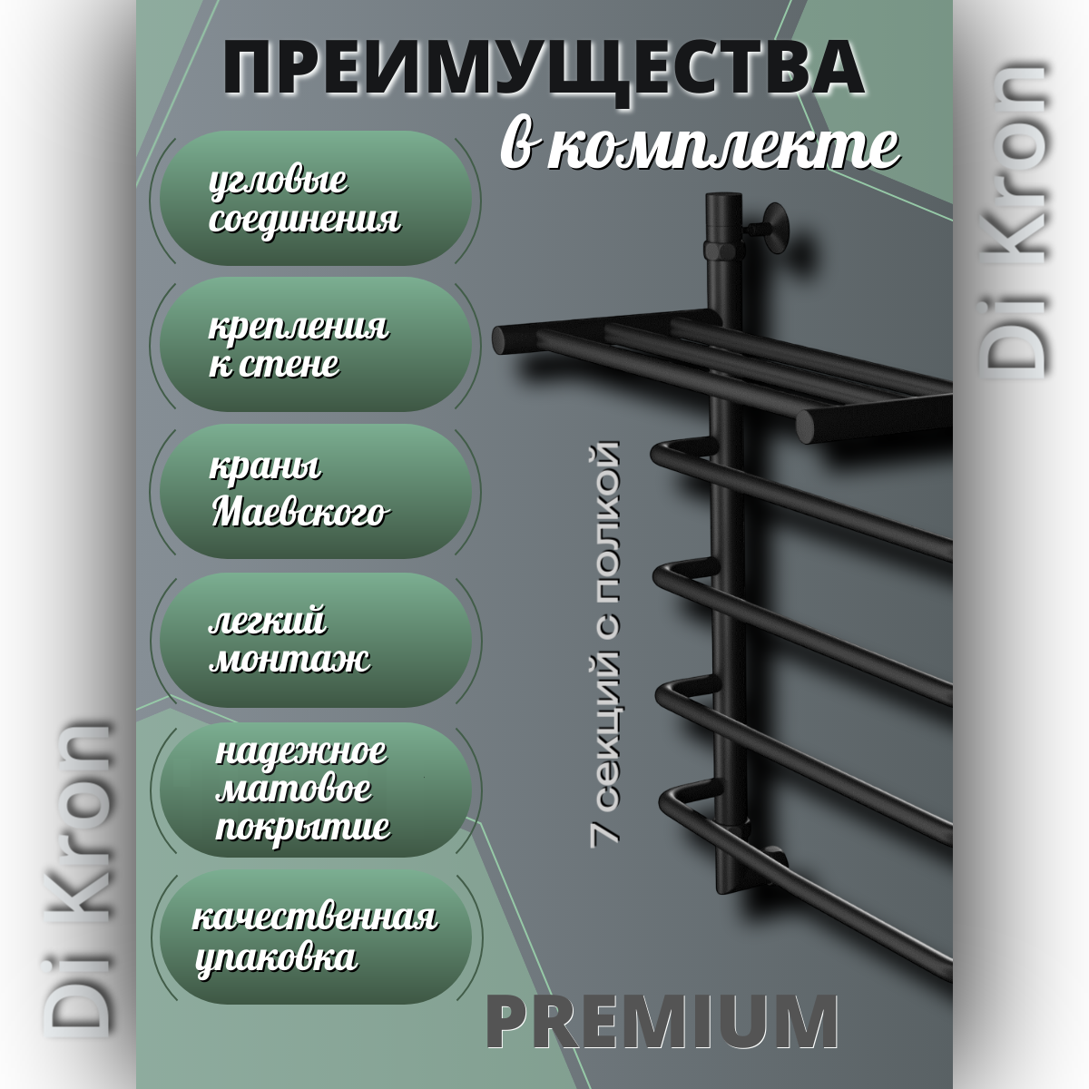 Купить Полотенцесушитель Водяной черный матовый Di Kron, модель Premium-S 600х500 с полкой, 3 вида подключения, лесенка с доставкой по всей России.