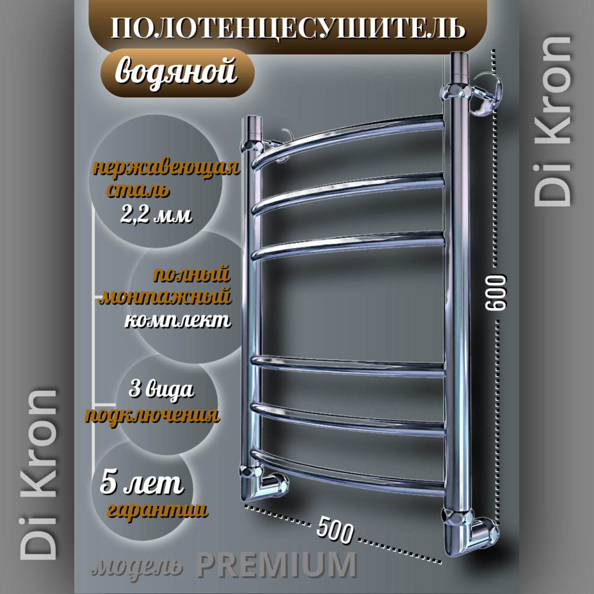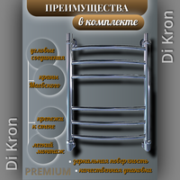 Купить Полотенцесушитель Водяной Di Kron, модель Premium-DG 600х500 из нержавеющей стали, 3 вида подключения, лесенка, хром с доставкой по всей России.