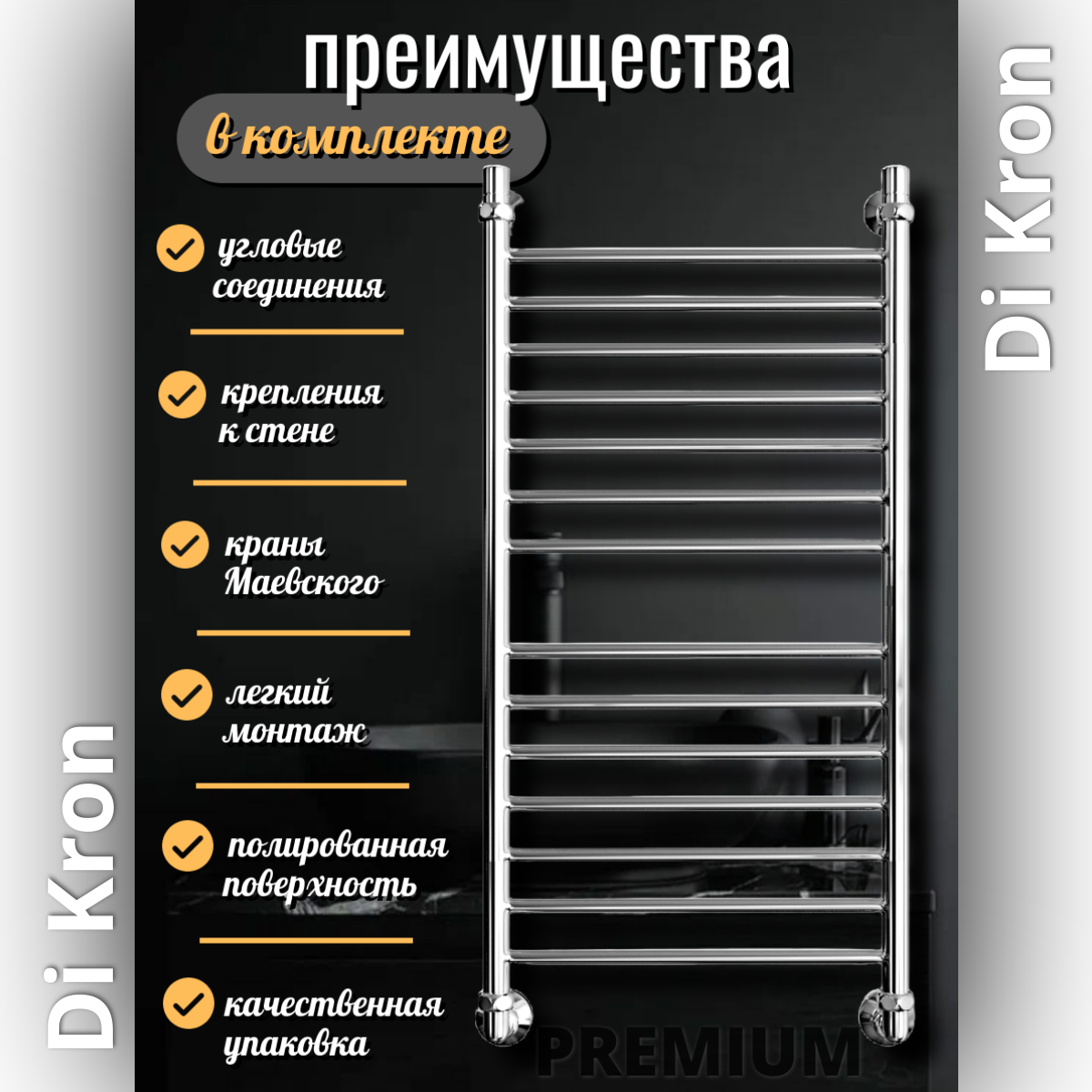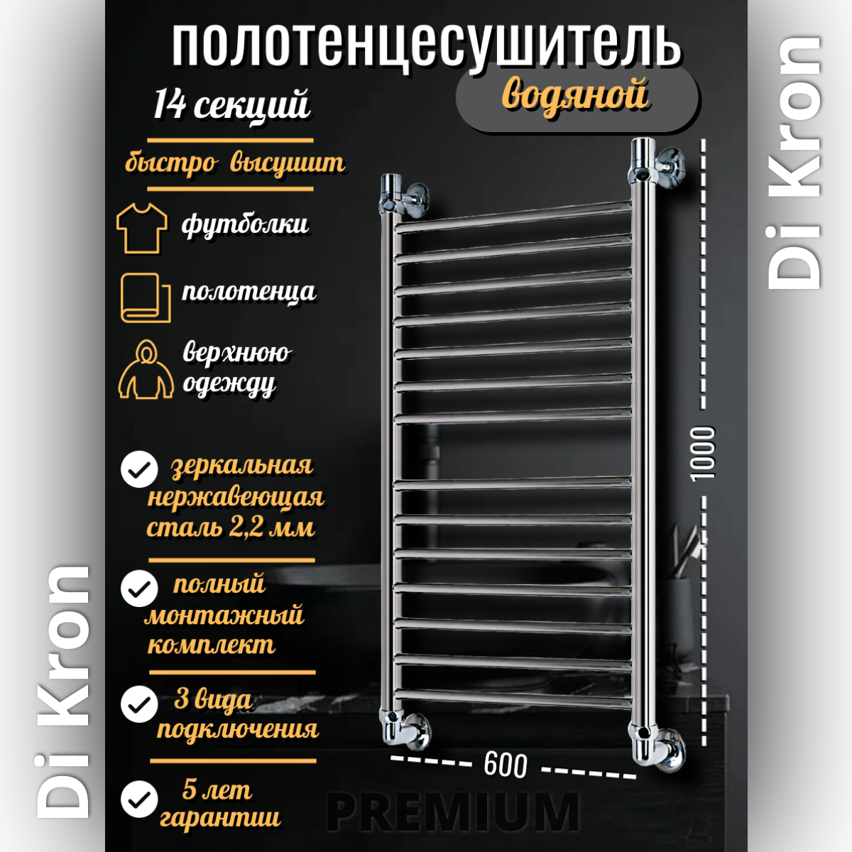 Купить Полотенцесушитель Водяной Di Kron, модель Premium-LX 1000х600 из нержавеющей стали, 3 вида подключения, лесенка, хром с доставкой по всей России. Полотенцесушитель Водяной Di Kron, модель Premium-LX 1000х600 из нержавеющей стали, 3 вида подключения, лесенка, хром: сравнение цен, характеристики, фото, актуальное наличие и цены.