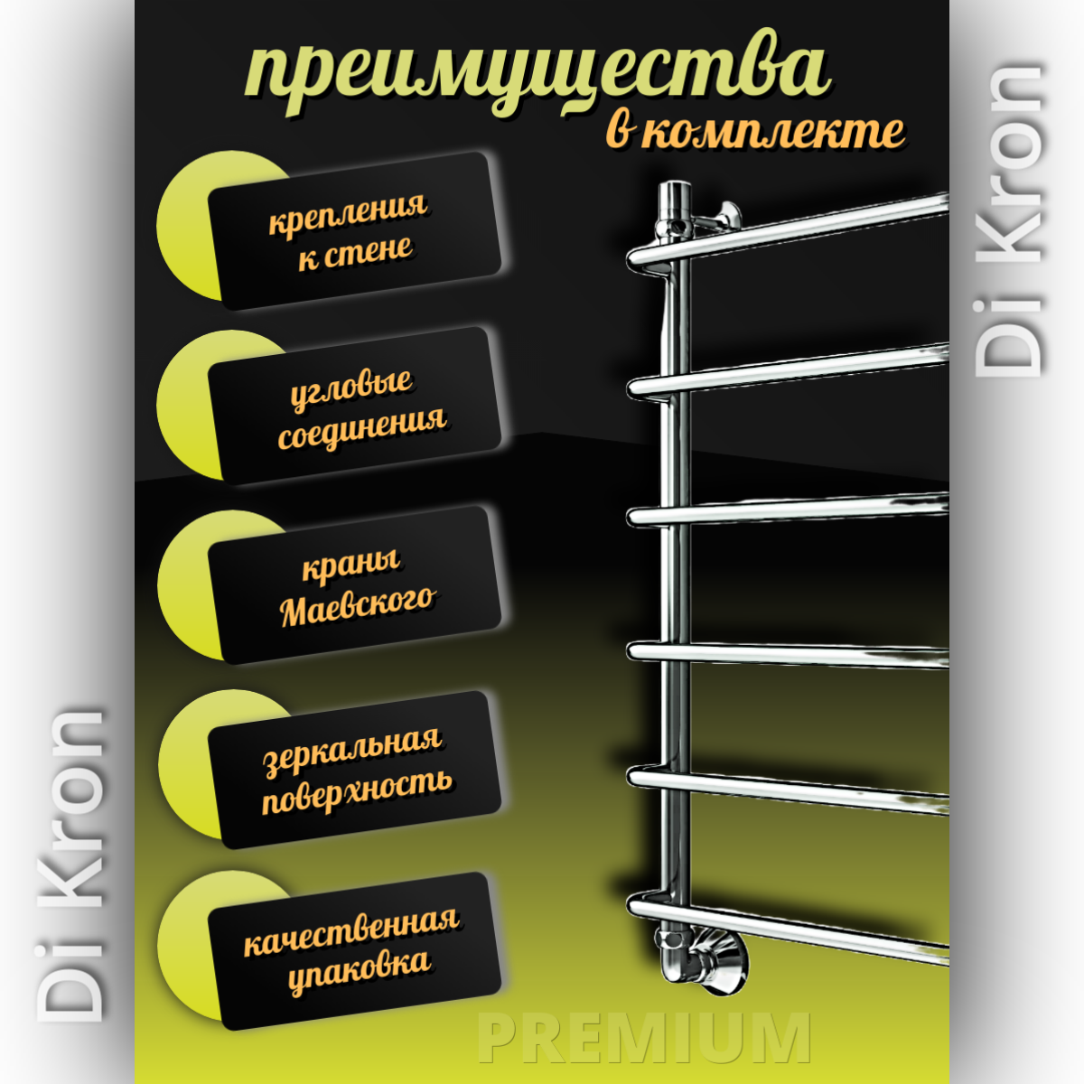 Купить Полотенцесушитель Водяной Di Kron, модель Premium-S 800х600 из нержавеющей стали, 3 вида подключения, лесенка, хром с доставкой по всей России.