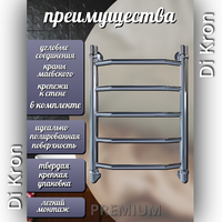Купить Полотенцесушитель Водяной Di Kron, модель Premium-T 600х500 из нержавеющей стали, 3 вида подключения, лесенка, хром с доставкой по всей России.