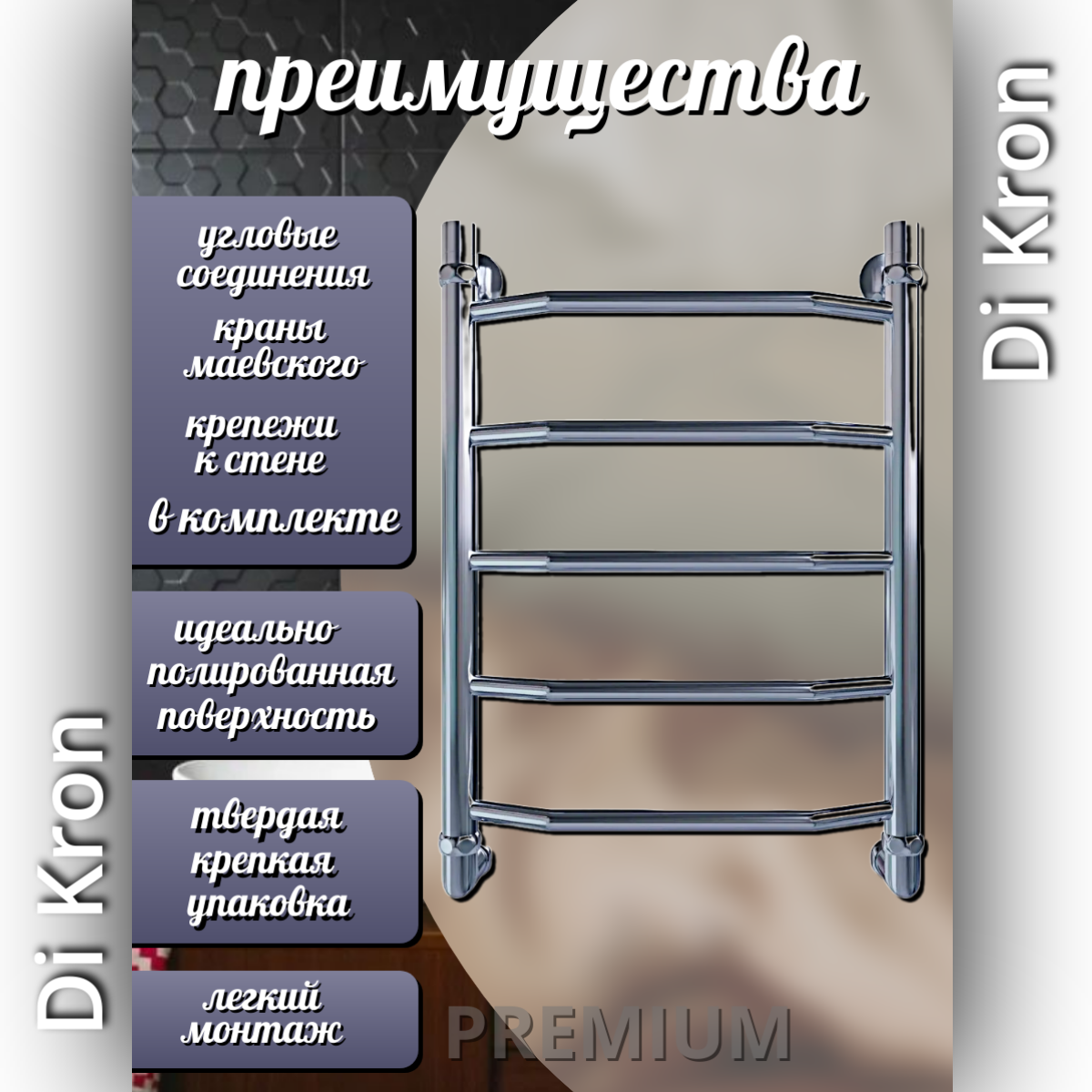 Полотенцесушитель Водяной Di Kron, модель Premium-T 600х500 из нержавеющей стали, 3 вида подключения, лесенка, хром: сравнение цен, характеристики, фото, актуальное наличие и цены.
