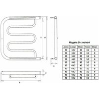 - Тепловая мощность, в зависимости от типоразмера полотенцесушителя, составляет от 130 до 360 Q-Вт.