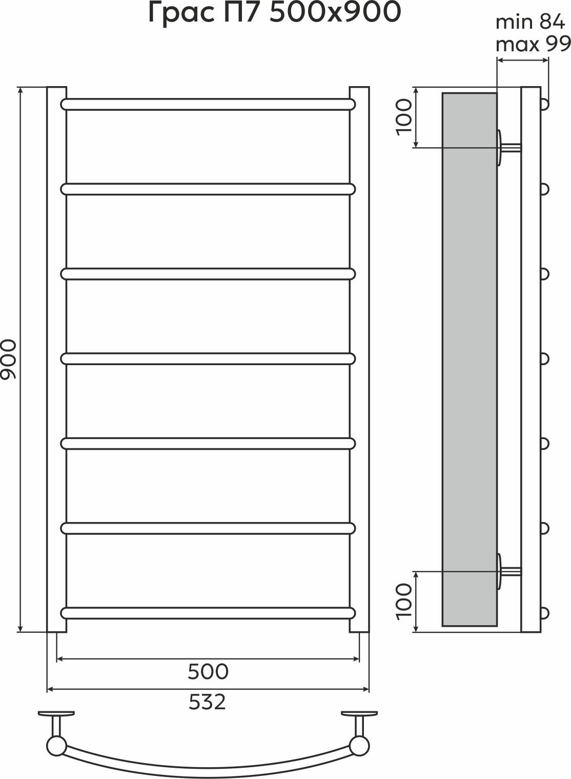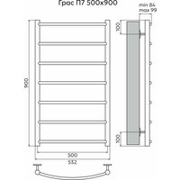 Полотенцесушитель водяной EL-TERM (Эл-Терм) грас 500х900 мм, нижнее подключение, нержавеющая сталь, гарантия 10 ЛЕТ: сравнение цен, характеристики, фото, актуальное наличие и цены.