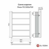 Полотенцесушитель водяной EL-TERM (Эл-Терм) лион 500х700 мм, нержавеющая сталь: сравнение цен, характеристики, фото, актуальное наличие и цены.