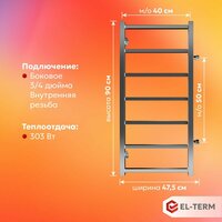 Полотенцесушитель водяной с боковым подключением EL-TERM (Эл-Терм) рейн 400х900 мм 500 мм, нержавеющая сталь: сравнение цен, характеристики, фото, актуальное наличие и цены.