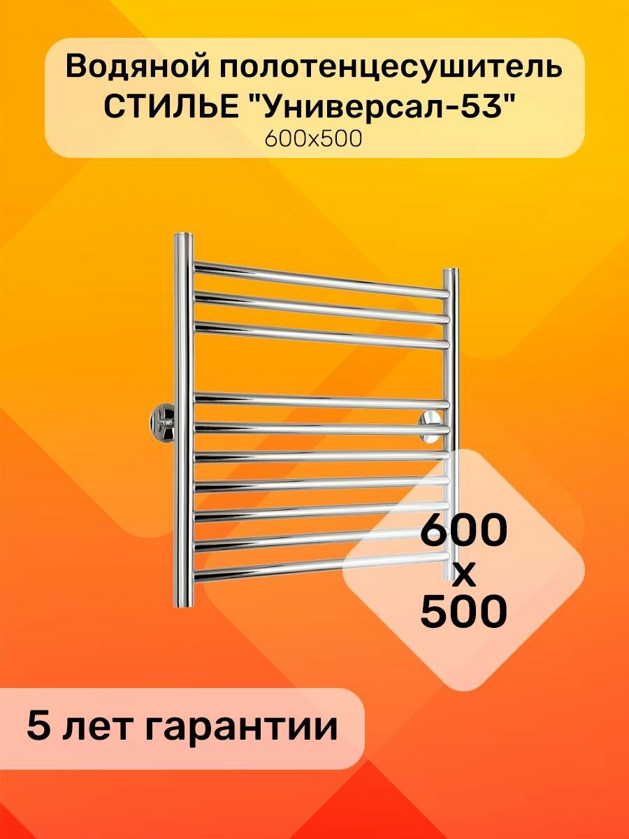 Полотенцесушитель водяной лесенка стилье «Универсал-53» 600х500, универсальное подключение: сравнение цен, характеристики, фото, актуальное наличие и цены.
