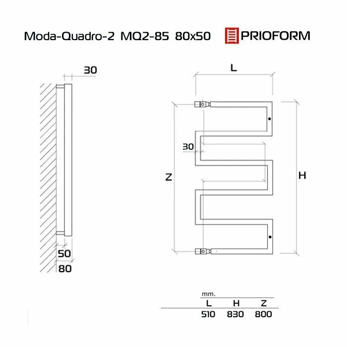 Полотенцесушитель водяной Moda-Quadro-2 80х50 (см) Хром матовый Угловое подключение: сравнение цен, характеристики, фото, актуальное наличие и цены.
