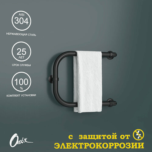Полотенцесушитель Водяной Onix, модель Best Turn Black Right 320×400, П-образный, Черный матовый, полный комплект, с защитой от электрокоррозии: сравнение цен, характеристики, фото, актуальное наличие и цены.