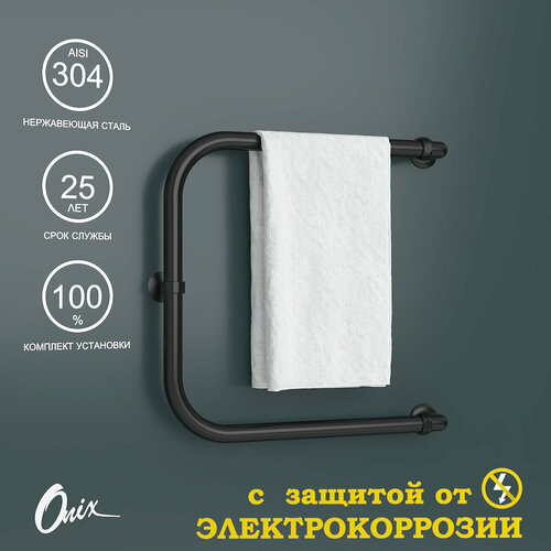 Полотенцесушитель Водяной Onix, модель Best Turn Black Right 500×500, П-образный, Черный матовый, полный комплект, с защитой от электрокоррозии: сравнение цен, характеристики, фото, актуальное наличие и цены.