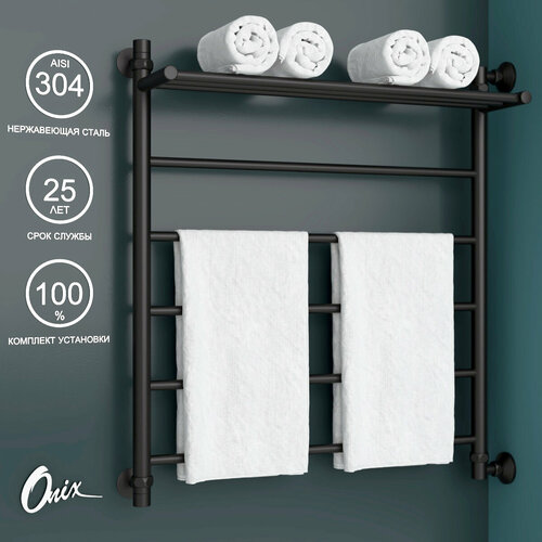 Купить Полотенцесушитель Водяной Onix, модель Classic Plus Black Right 700×800, Лесенка с боковым подключением справа, Черный матовый, полный комплект с доставкой по всей России.
