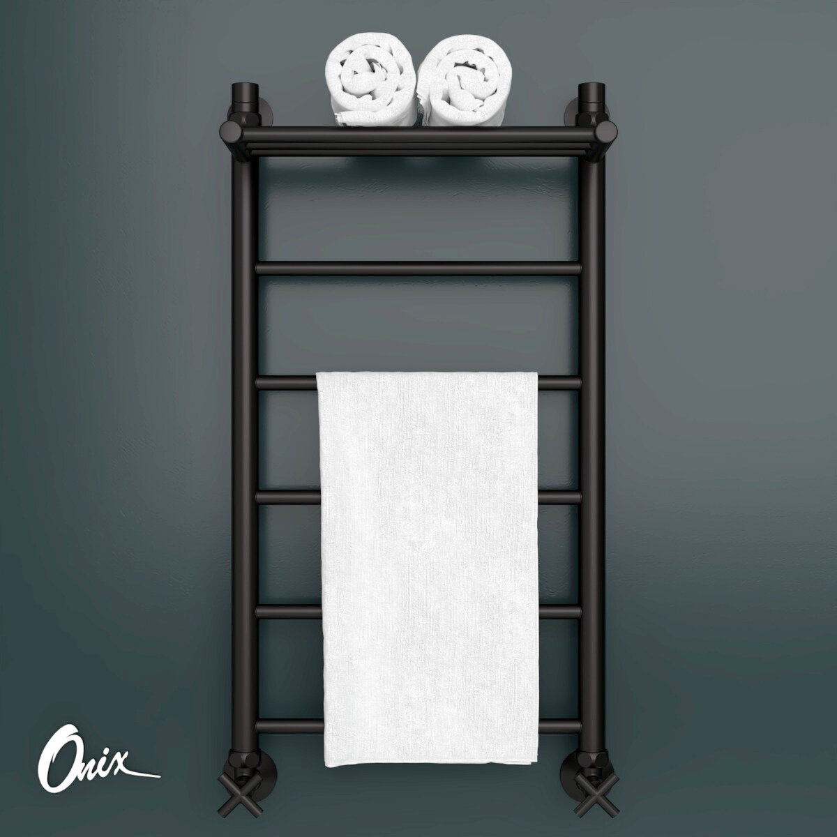 Купить Полотенцесушитель водяной Onix, модель Classic Plus Pro Black 400×800 Лесенка с нижним подключением, Черный матовый, полный комплект с доставкой по всей России.