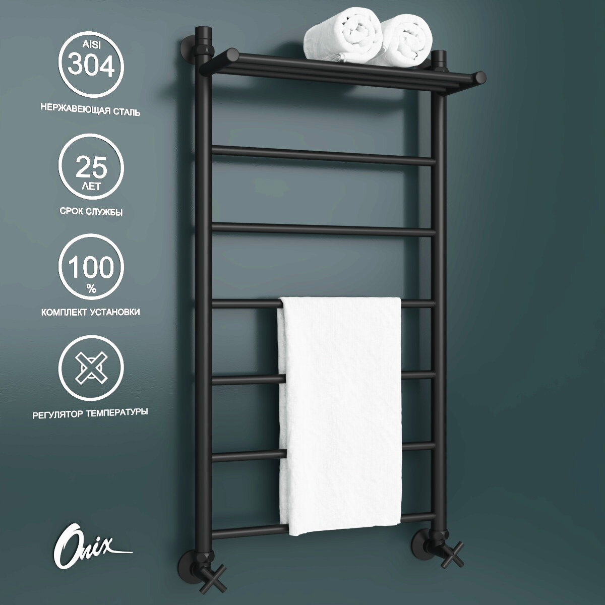 Полотенцесушитель водяной Onix, модель Classic Plus Pro Black 500×1000 Лесенка с нижним подключением, черный матовый, полный комплект: сравнение цен, характеристики, фото, актуальное наличие и цены.