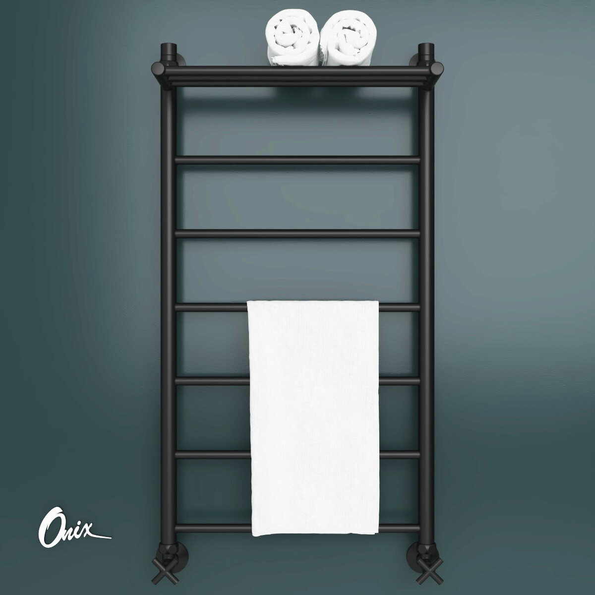 Купить Полотенцесушитель водяной Onix, модель Classic Plus Pro Black 500×1000 Лесенка с нижним подключением, черный матовый, полный комплект с доставкой по всей России.
