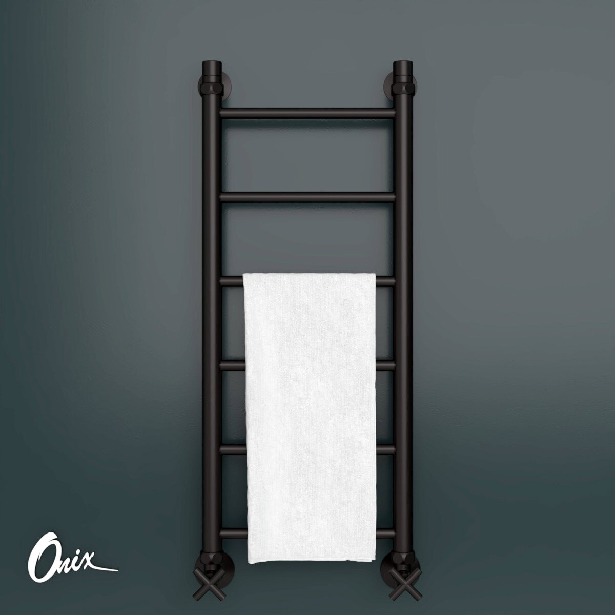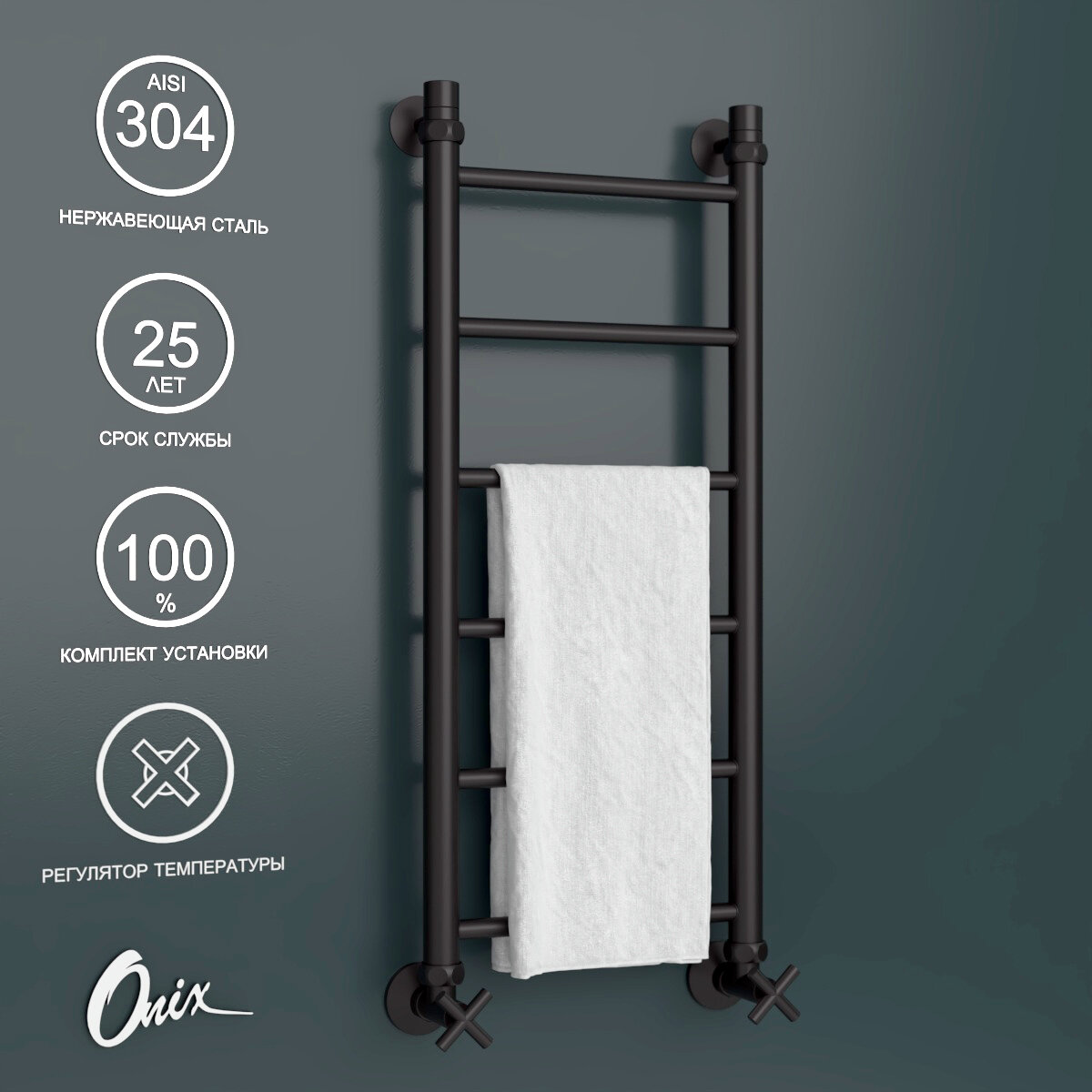 Купить Полотенцесушитель Водяной Onix, модель Classic PRO Black 300×800 Лесенка с нижним подключением, Черный матовый, полный комплект с доставкой по всей России.