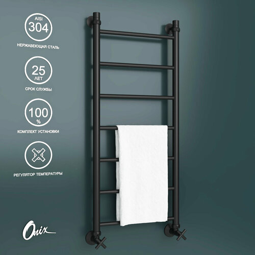 Купить Полотенцесушитель Водяной Onix, модель Classic Pro Black 400×1000 Лесенка с нижним подключением, черный матовый, полный комплект с доставкой по всей России.